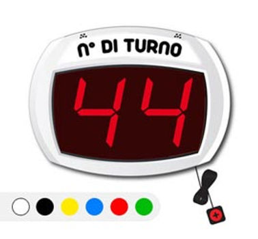 Il sistema di gestione code myturn è composto di uno o più visori con altezza caratteri variabile da 6 a 12 cm., unità di pilotaggio a telecomando o a filo ed accessori quali distributori di ticket, supporto per distributore e rotoli di ticket numerati.